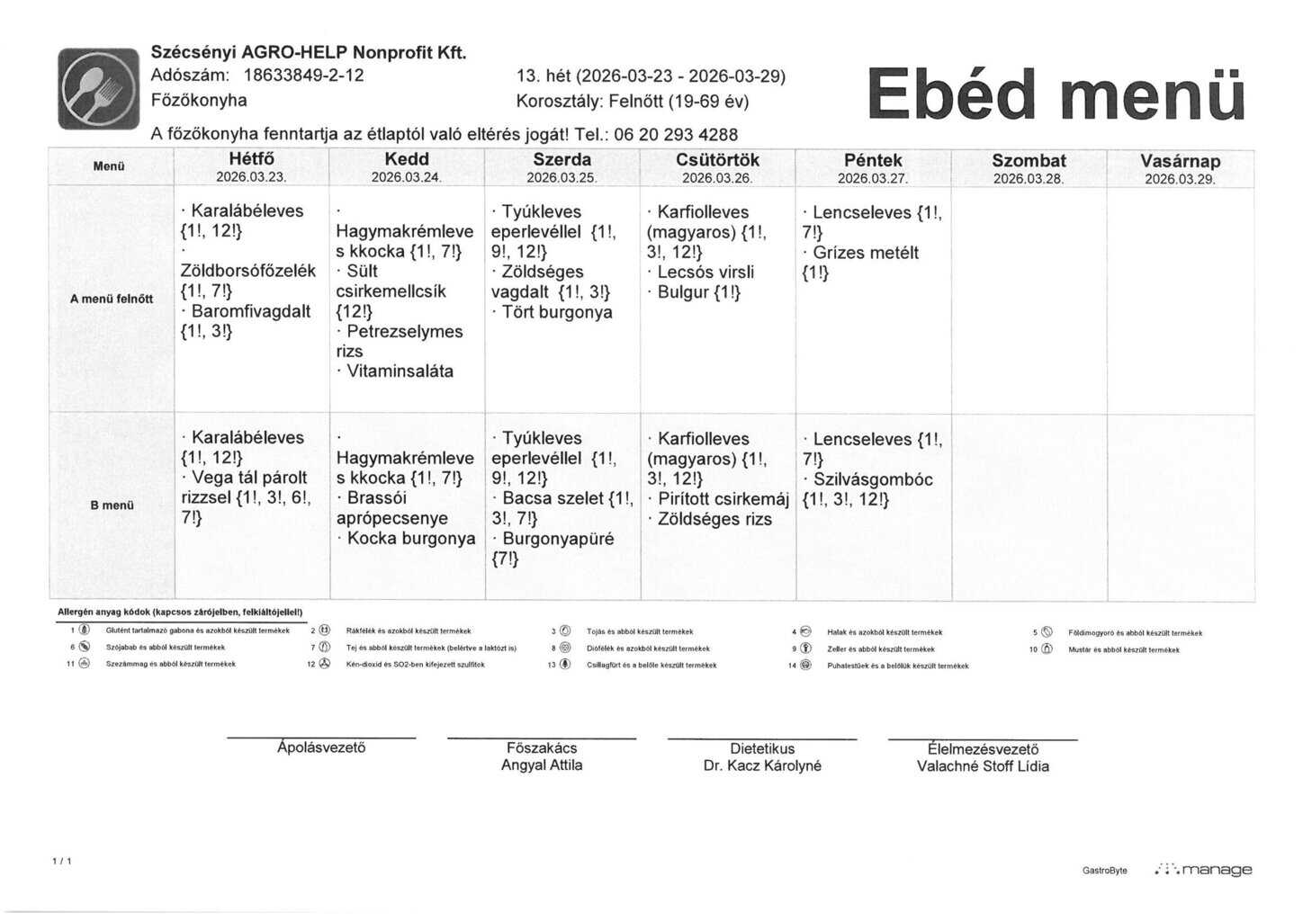 A SZOCIÁLIS ÉTKEZTETÉS 13. HETI ÉTLAPJA